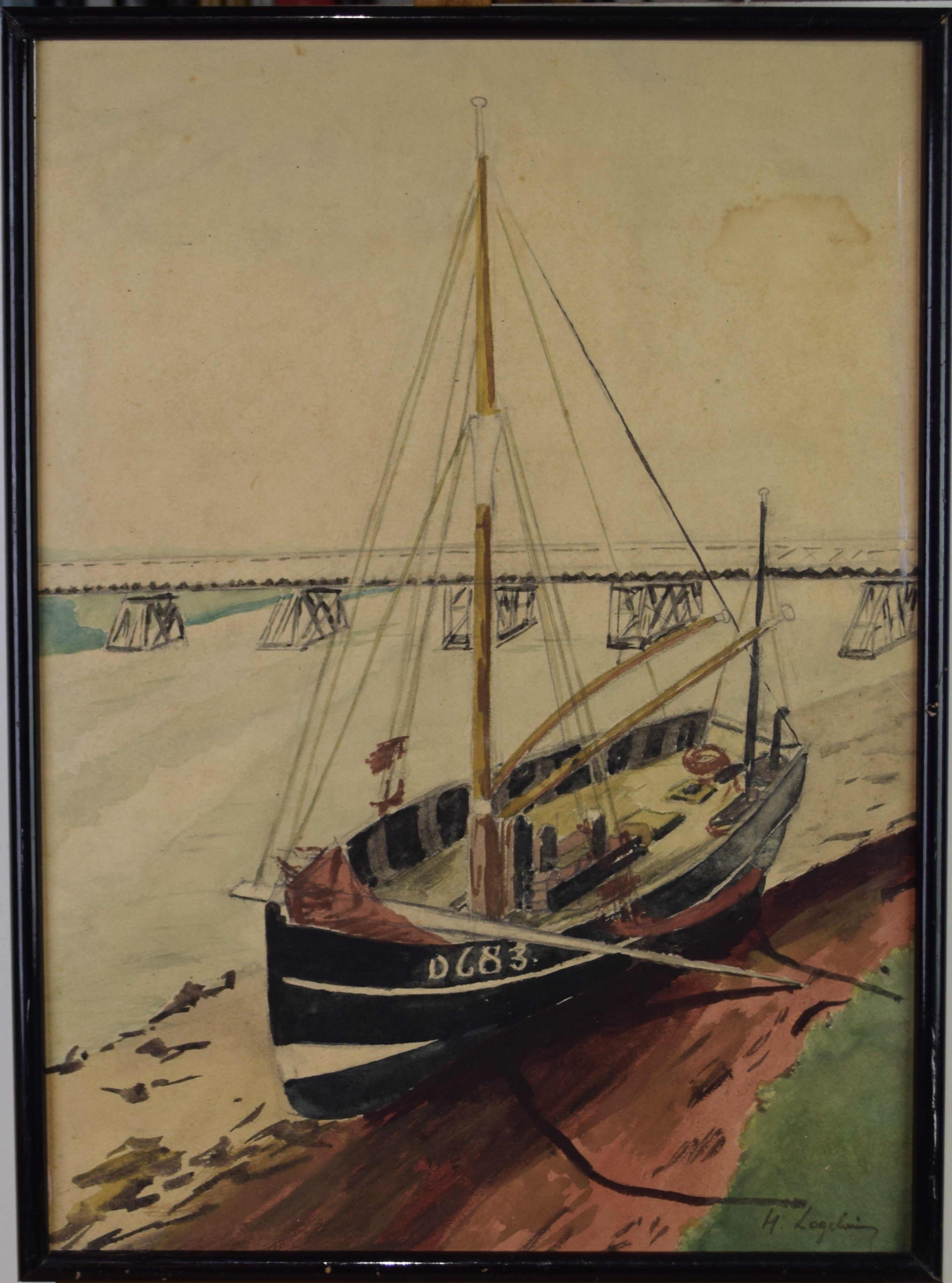 Type : tableau Technique : aquarelle Support : papier Sujet : marine Cadre : oui Dimension : 42cm x 30cm (HxL) Signature : oui Contre-signature : non Monogrammé : non Epoque : 1ère moitié 20e siècle Prix de vente : 80 Eur.