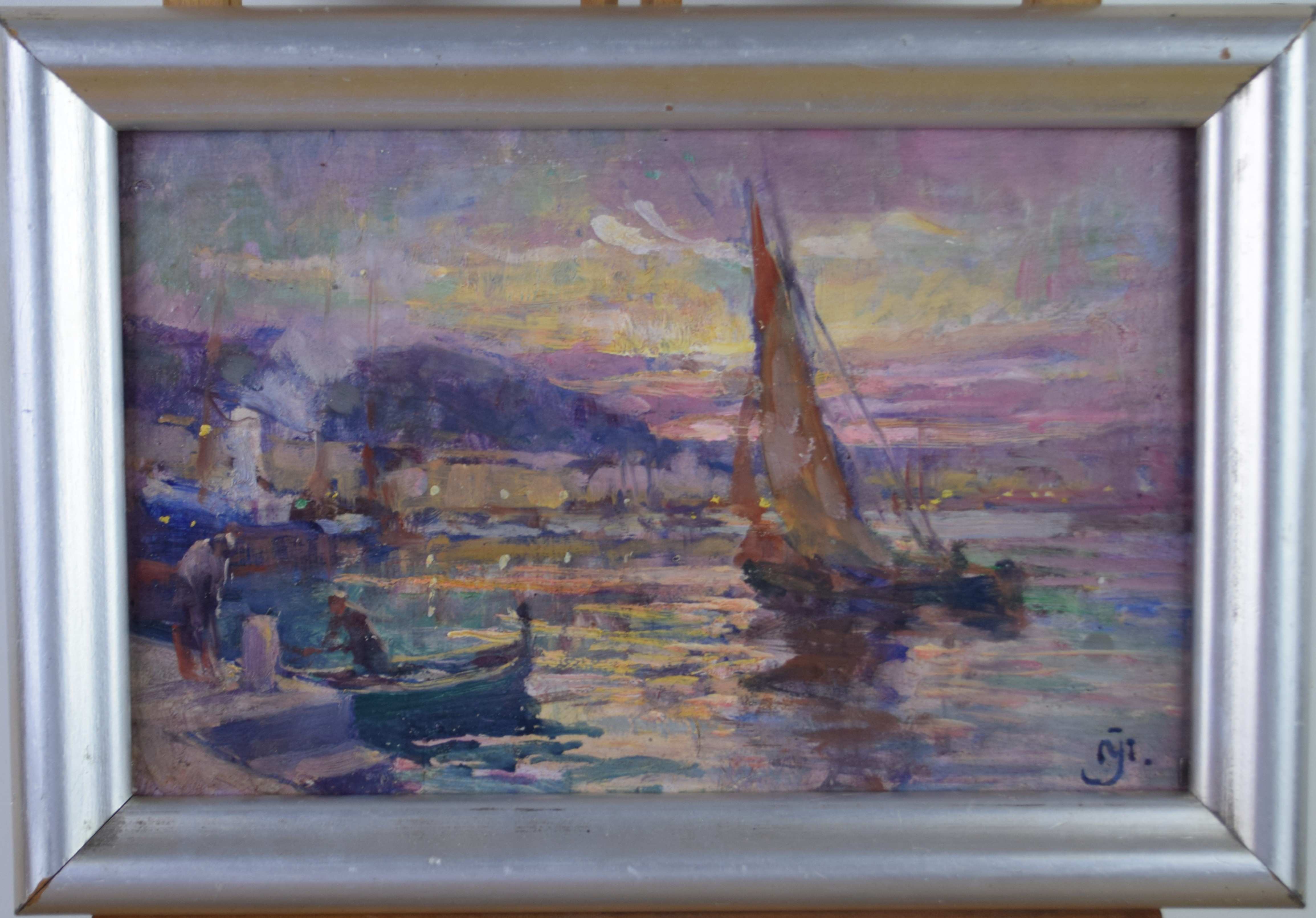 Réf. : Pot Type : tableau Technique : huile Support : panneau Sujet : marine,ville Cadre : oui Dimension : 19cm x 30cm (HxL) Signature : oui Contre-signature : non Monogrammé : non Epoque : 1ère moitié 20e siècle Prix de vente : 340 Eur.