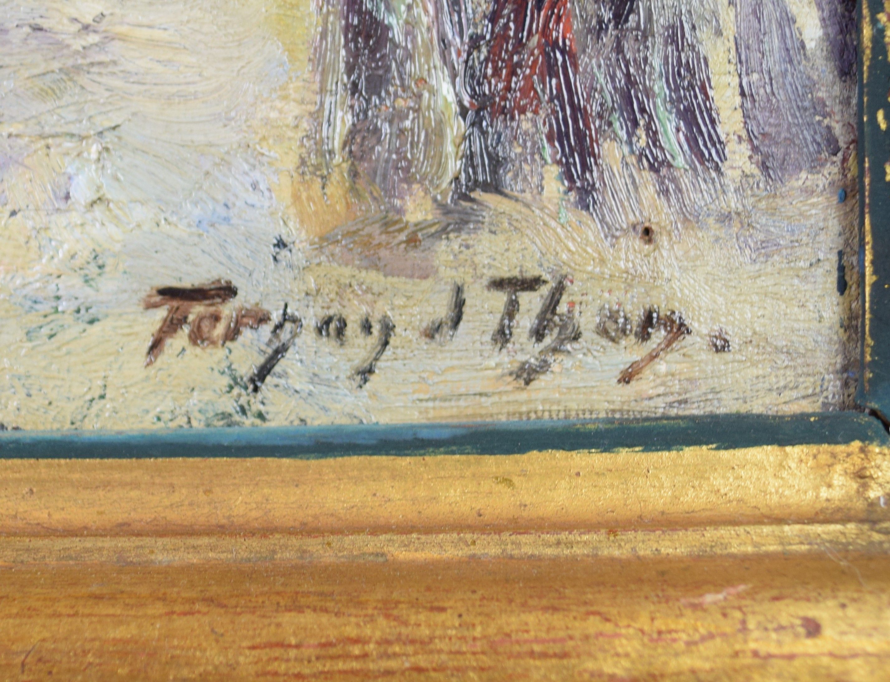 Type : tableau Technique : huile Support : toile Sujet : personnage,ville Cadre : oui Dimension : 76cm x 50cm (HxL) Signature : non Contre-signature : non Monogrammé : non Epoque : 1ère moitié 20e siècle Prix de vente : 360 Eur.