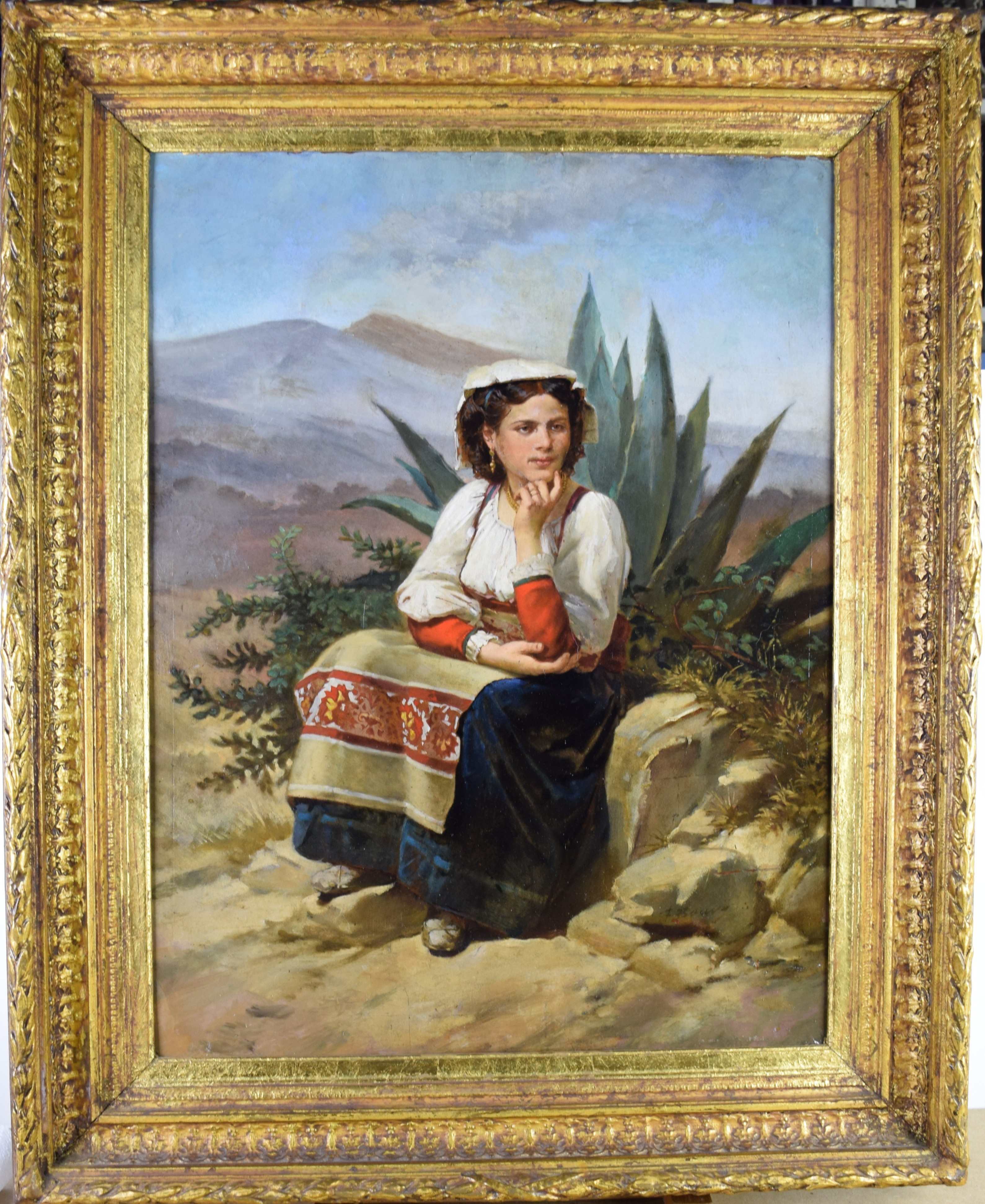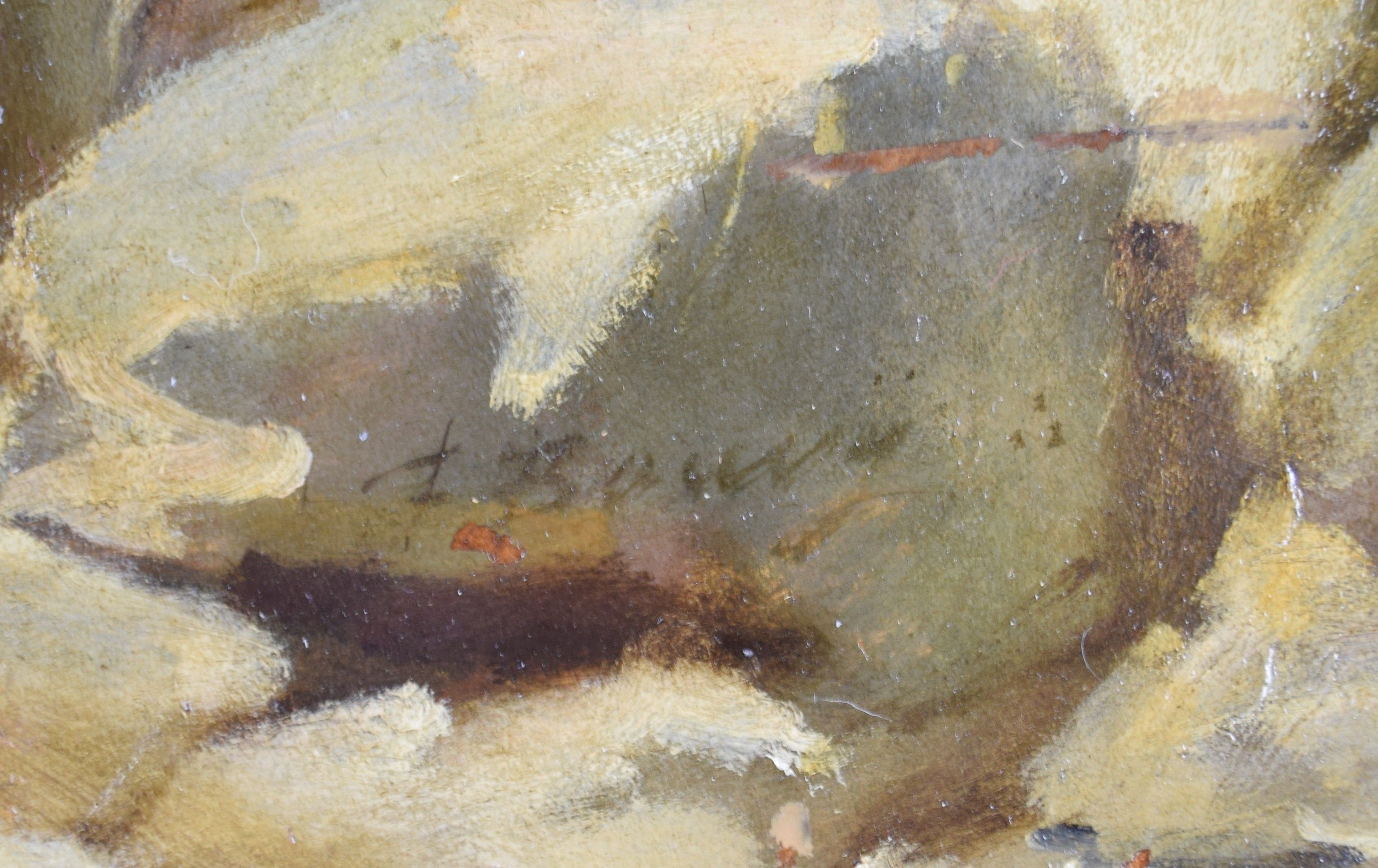 Type : tableau Technique : huile Support : carton Sujet : paysage,personnage Cadre : oui Dimension : 62cm x 48cm (HxL) Signature : oui Contre-signature : non Monogrammé : non Epoque : 19e siècle Prix de vente : 780 Eur.